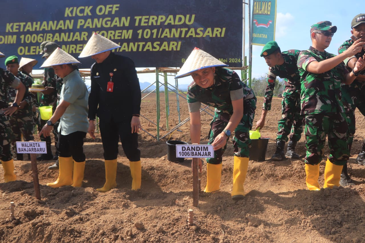 Dandim 1006/Banjar Letkol Kav Zulkifer Sembiring, mengatakan, Kick Off Ketahanan Pangan Terpadu telah buka oleh Danrem 101/Ant Brigjen TNI Ari Ariyanto seluas 200 lahan pertanian di Bukit Petruk Yonif 623/BWU Kelurahan Sungai Ulin Kecamatan Banjarbaru Utara, Kota Banjarbaru.