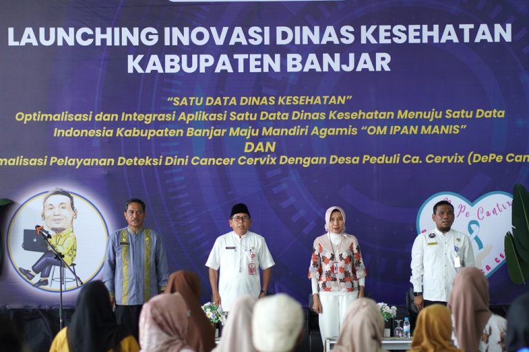 MARTAPURA,- Dinas Kesehatan Kabupaten Banjar launching (meluncurkan) aplikasi Satu Data “Om Ipan Manis (Optimalisasi dan Integrasi Aplikasi Satu Data Dinas Kesehatan Menuju Kabupaten Banjar Maju Mandiri Agamis) dan inovasi “Depe Cantix (Optimalisasi Pelayanan Deteksi Dini Cancer Cervix Dengan Desa Peduli ca.Cervix), di Bukit Bintang Park & Resort Desa Padang Panjang, Kecamatan Karang Intan, Jumat (13/09/2024) pagi.