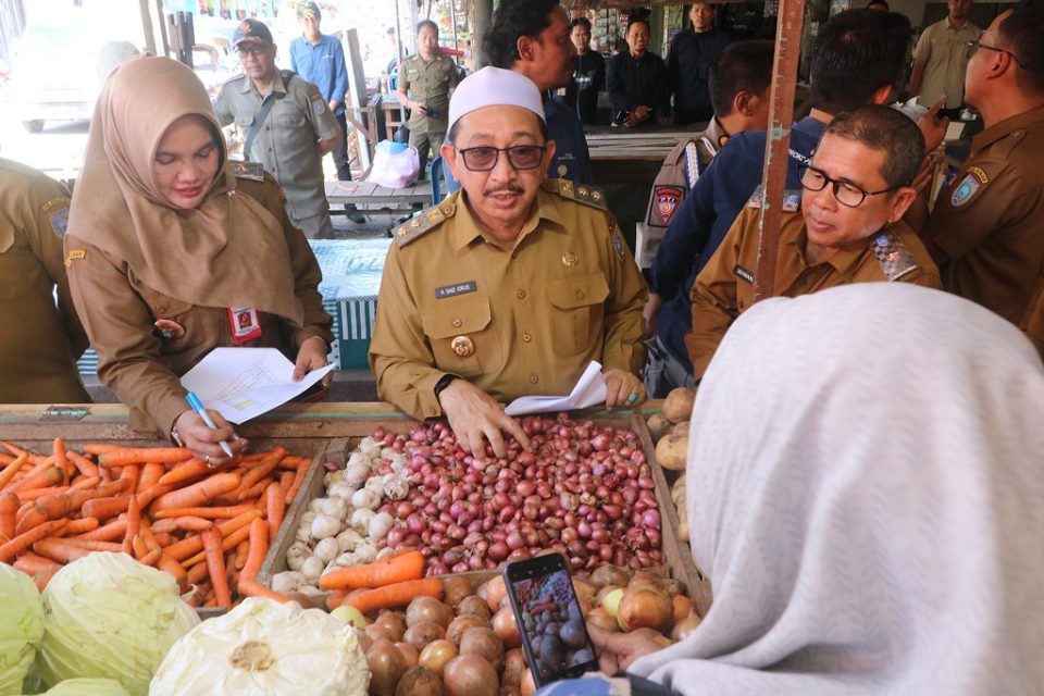 MARTAPURA,- Usai membuka pasar murah Ramadhan di halaman Kantor Bupati Banjar, Wakil Bupati Banjar Habib Idrus Al Habsyi lakukan pantauan harga bahan pokok dan penting lainnya di Pasar PPS Sekumpul, Martapura, Senin (24/3/2025) siang.