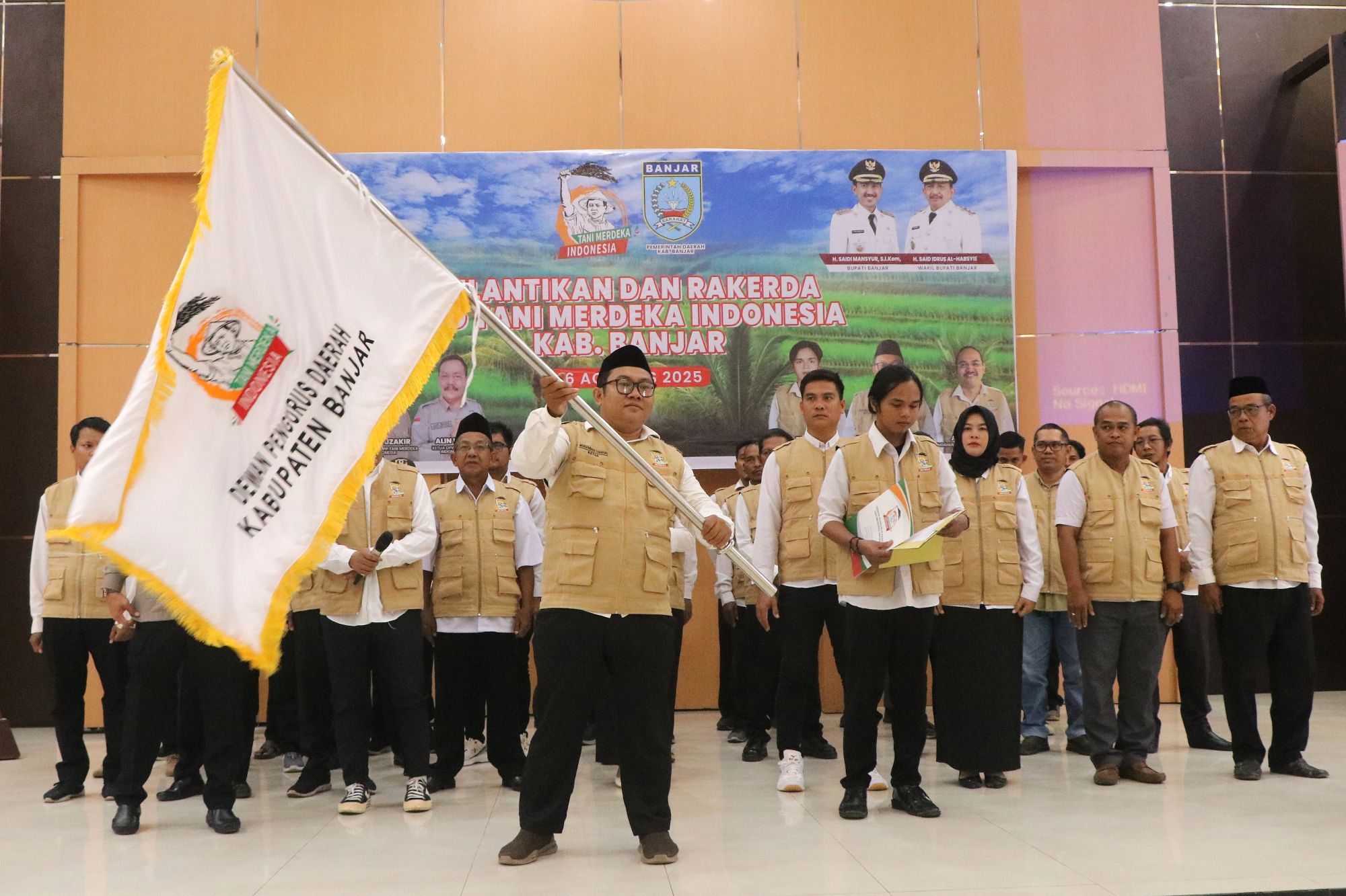 Pelantikan ditandai dengan penyerahan SK dan bendera pataka Tani Merdeka oleh Ketua DPW kepada Ketua DPD serta pengibaran oleh Muhammad Syarofi selaku Ketua DPD Tani Merdeka Indonesia Kabupaten Banjar yang baru dilantik.