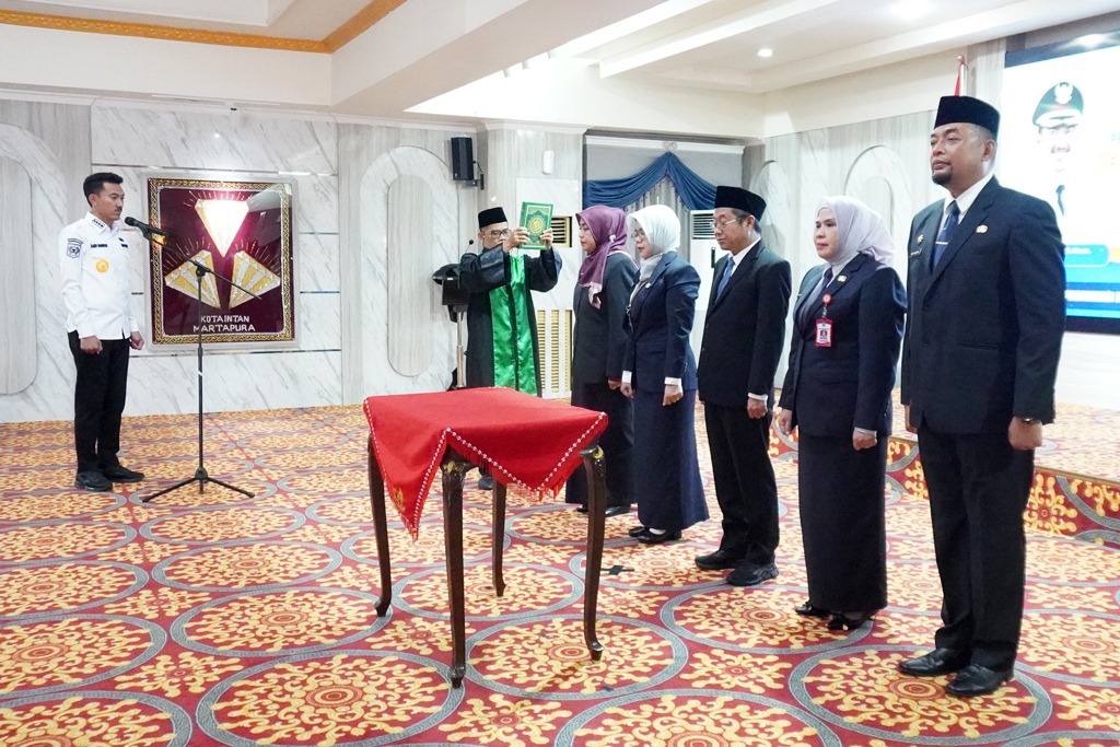 MARTAPURA – Bupati Banjar H Saidi Mansyur resmi melantik dan mengambil sumpah lima pejabat Jabatan Pimpinan Tinggi Pratama (JPTP) di lingkungan Pemerintah Kabupaten Banjar, di Mahligai Sultan Adam, Martapura, Rabu (17/9/2025) pagi.
